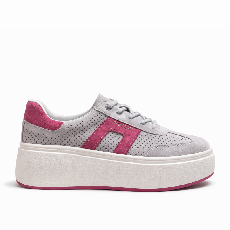 Nowoczesne sneakersy marki Goodin w kolorze Blue Fuxia to połączenie wygody i modnego, kobiecego akcentu. Model wykonany jest w całości ze skóry naturalnej – zarówno cholewka, jak i wkładka – co zapewnia komfort noszenia oraz odpowiednią cyrkulację powietrza.