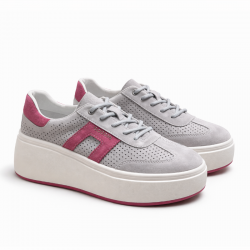 Stabilna, 4-centymetrowa platforma delikatnie podwyższa sylwetkę i gwarantuje wygodę przez cały dzień. Perforowana cholewka oraz kontrastowe, różowe detale nadają butom lekkości i sportowego charakteru, dzięki czemu świetnie sprawdzą się w codziennych, casualowych stylizacjach.