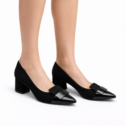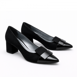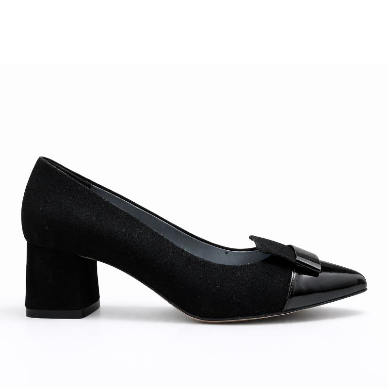Eleganckie czółenka marki Kordel w klasycznym, czarnym kolorze, które doskonale sprawdzą się w stylizacjach codziennych, biznesowych oraz wizytowych. Zamszowa cholewka nadaje butom szlachetny wygląd, a wkładka ze skóry naturalnej zapewnia komfort noszenia przez cały dzień. Stabilny obcas o wysokości około 6 cm gwarantuje wygodę i odpowiednie podparcie, a subtelny detal na przodzie dodaje modelowi eleganckiego charakteru.