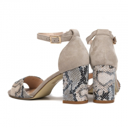 Modne sandały na słupku- SERGIO LEONE to propozycja dla pań ceniących elegancję i wygodę. Buty wykonane zostały z eko skóry imitującej skórę węża, w środku skórzana wkładka. Zapinane na klamerkę. Obcas o wysokości ok. 8 cm podkreśla kobiecą sylwetkę. Numeracja standardowa. Dla średniej tęgości stopy zalecamy zakup najczęściej wybieranego rozmiaru.