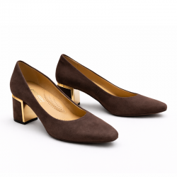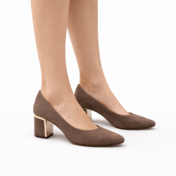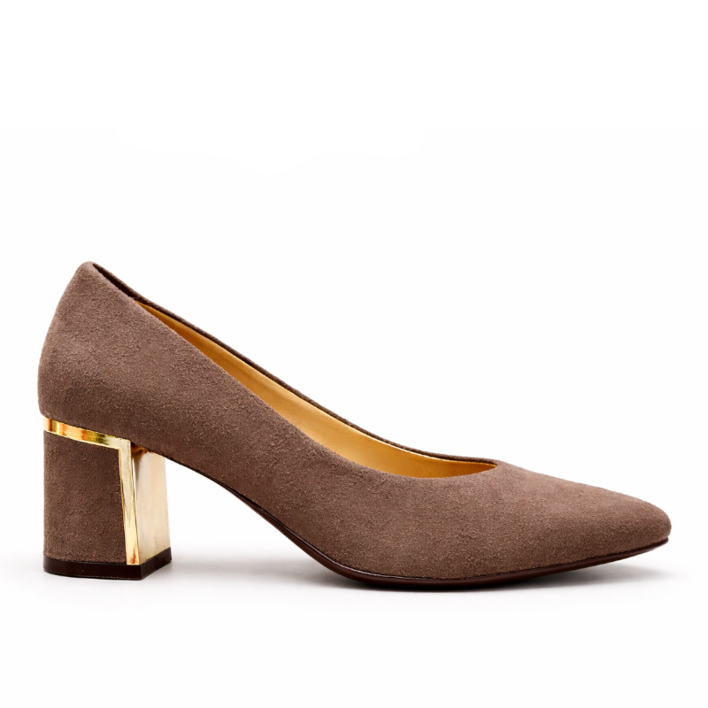 Eleganckie czółenka w subtelnym, brązowym kolorze, które doskonale sprawdzą się w stylizacjach codziennych, biznesowych oraz wizytowych. Cholewka została wykonana z wysokiej jakości skóry zamszowej, a skórzana wkładka podkreśla komfort użytkowania. Stabilny obcas o wysokości 6,3 cm zapewnia wygodę przez wiele godzin, a delikatny złoty detal nadaje modelowi nowoczesnej elegancji. Klasyczny fason sprawia, że buty z łatwością dopasują się do wielu stylizacji.